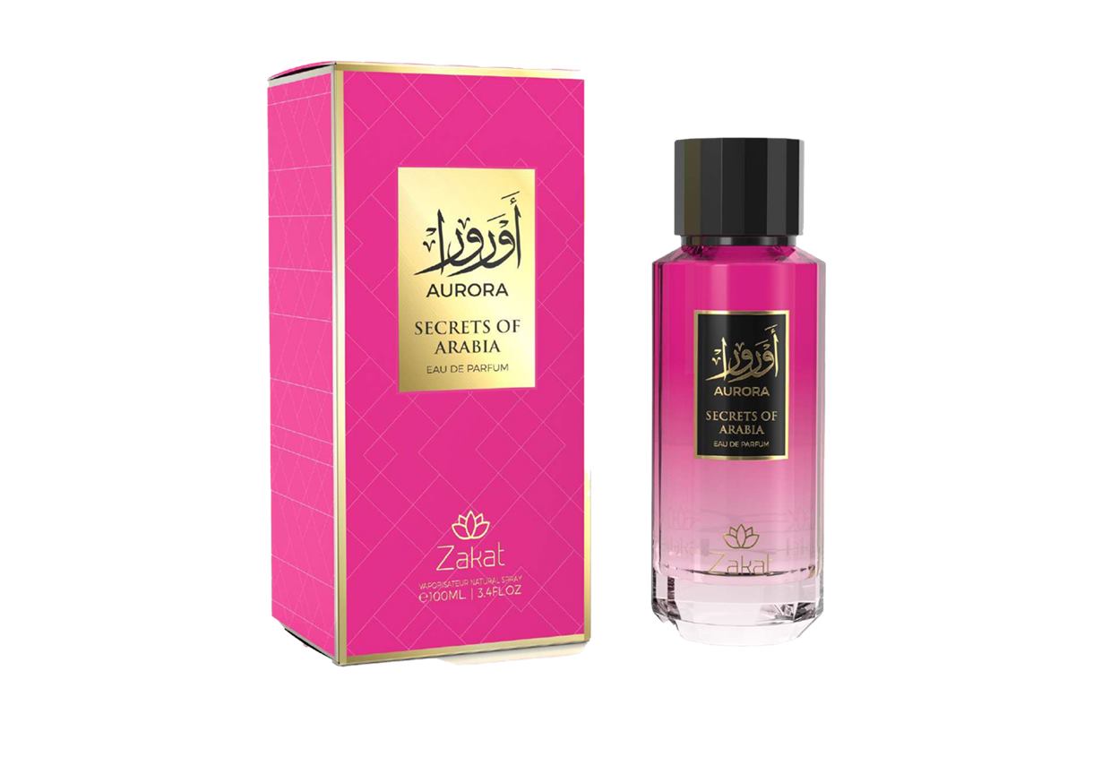 El perfume Aurora de la colección "Secrets of Arabia" de Zakat es una fragancia unisex que combina notas cítricas, florales y amaderadas para ofrecer una experiencia olfativa equilibrada y sofisticada.
