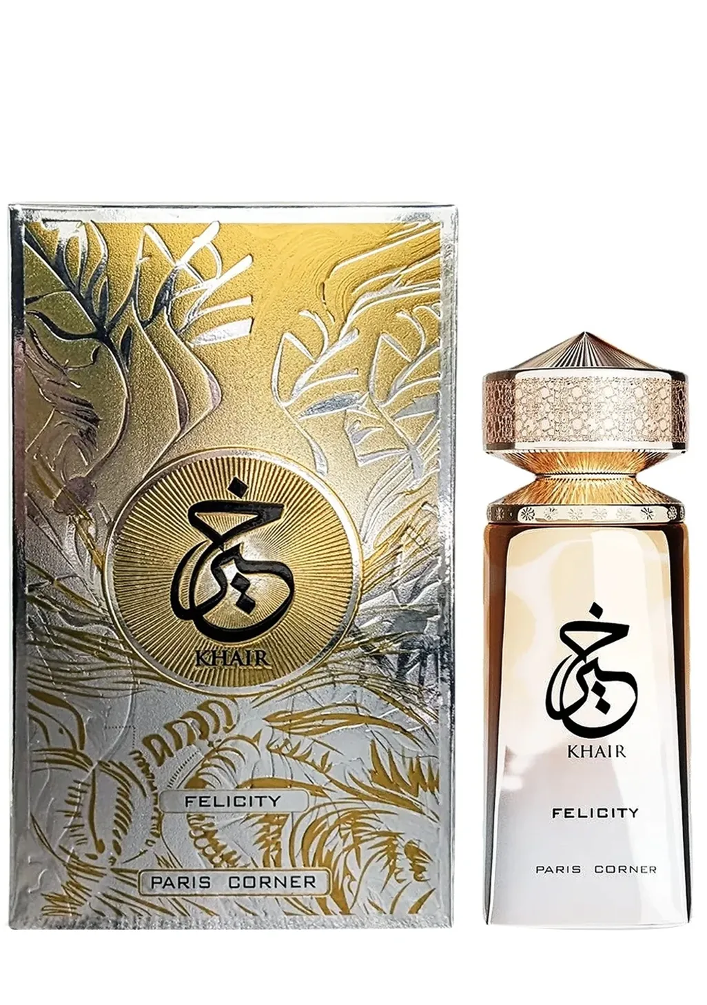 Khair Felicity de PARIS CORNER es una fragancia para mujer. Se trata de una fragancia nueva, lanzada en 2025. Sus notas de salida son champán, fresia y grosella negra; las notas de corazón son almizcle, jazmín y rosa de mayo; y las notas de fondo son azúcar, vainilla y almizcle.